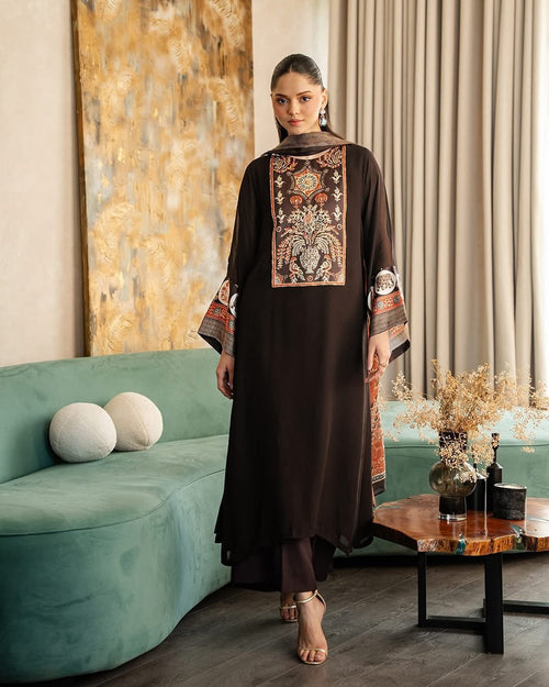 Midnight Navy Velvet Embroidered Caftan Set with Flared Sleeves and Silk Trousers